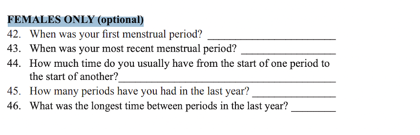 The questions on college students’ menstrual historical past had been non-compulsory for greater than 20 years.